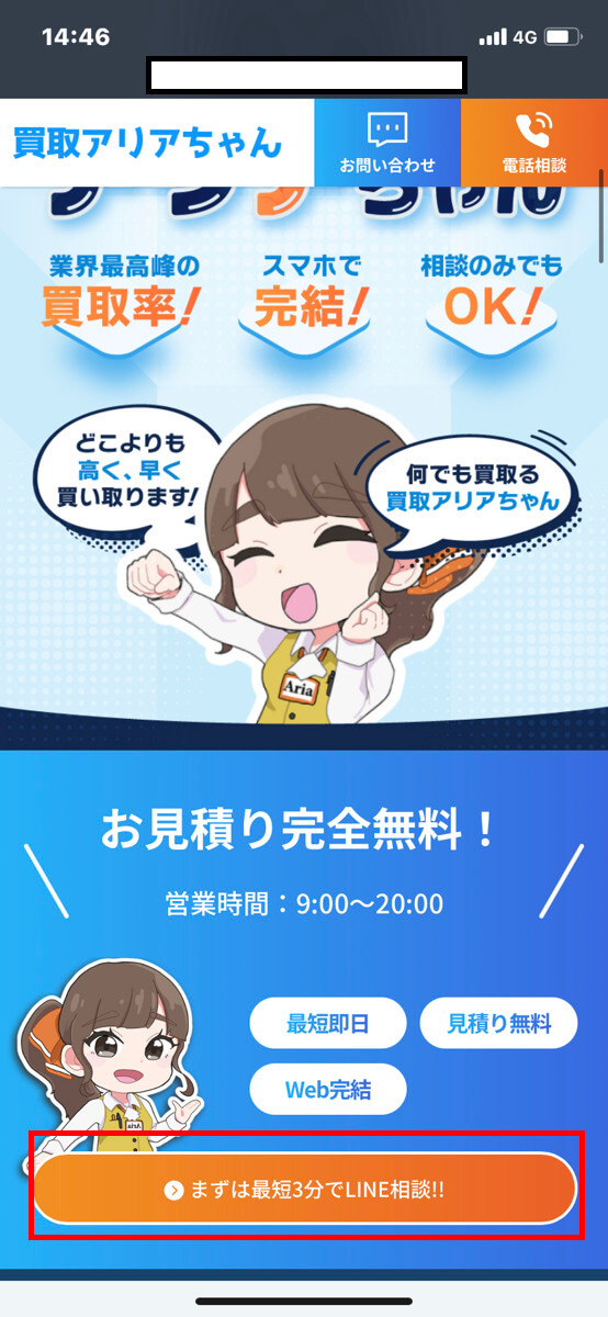 まずは、買取アリアちゃん公式サイトからLINE登録を行いましょう。