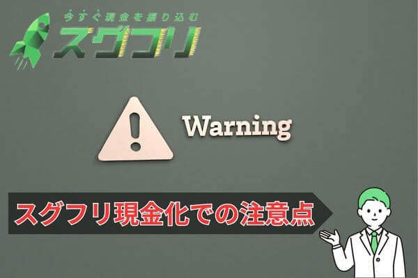 スグフリで現金化する際に注意してほしい点は以下の2つです。